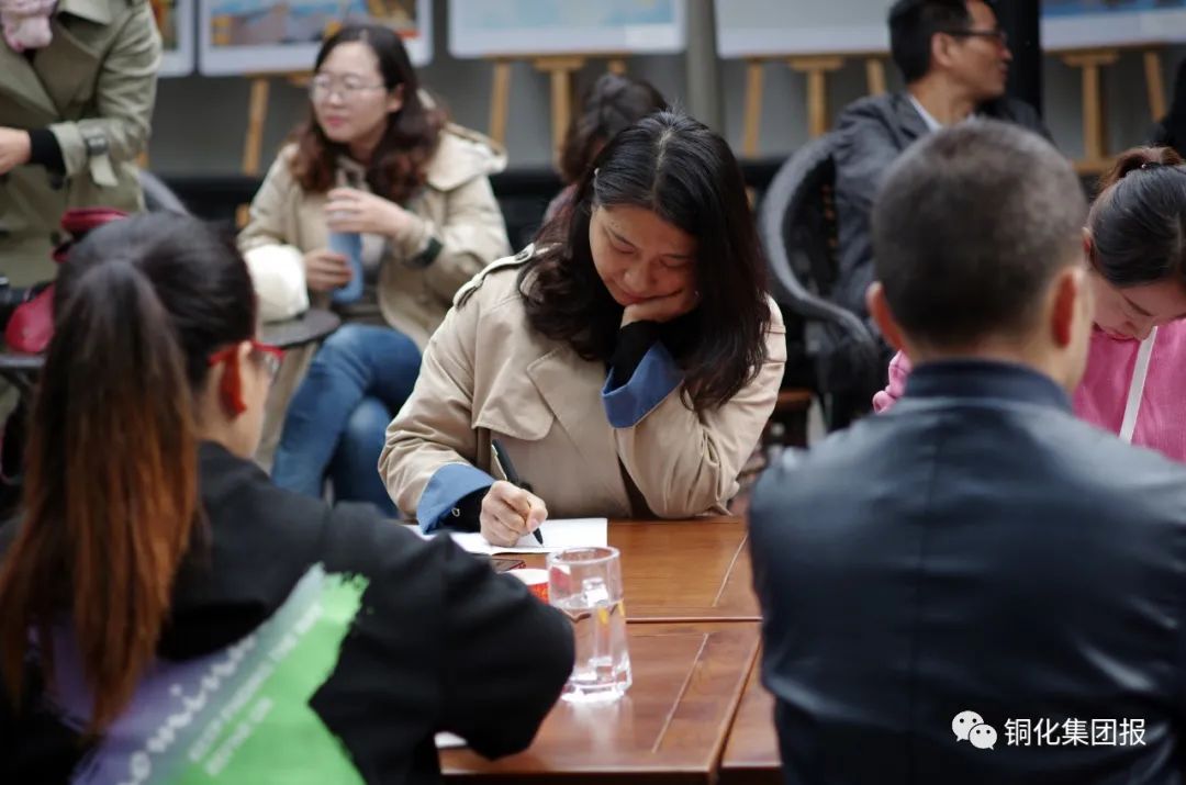 “好香啊,真是神仙處所!”“腦洞夠大呀,在這兒培訓(xùn)也是享受!”一進(jìn)門,通訊員們便被書(shū)院典雅秋色和濃郁桂香所吸引,就連《銅陵日?qǐng)?bào)》與《銅化集團(tuán)》報(bào)的4位老師也忍不住贊嘆:“花香伴書(shū)香,確是看書(shū)、學(xué)習(xí)的佳境!”幾張小桌拼湊在院里的桂花樹(shù)下,小方凳圍坐一圈,培訓(xùn)班正式開(kāi)課。沒(méi)有電子屏,也沒(méi)有刻意準(zhǔn)備的課件,一縷花香,一杯清茶,拋開(kāi)拘謹(jǐn),“師生”促膝圍坐,開(kāi)啟了“嘮嗑”式培訓(xùn)。通訊員們把平時(shí)找新聞、寫(xiě)新聞過(guò)程中遇到的困惑、難事拿出來(lái)發(fā)問(wèn)求解,4位編輯老師也結(jié)合多年采、寫(xiě)、編經(jīng)驗(yàn)和現(xiàn)實(shí)所遇事例盡心為大家答疑解惑,通訊員們之間還結(jié)合自己見(jiàn)報(bào)之作分享了各自心得。