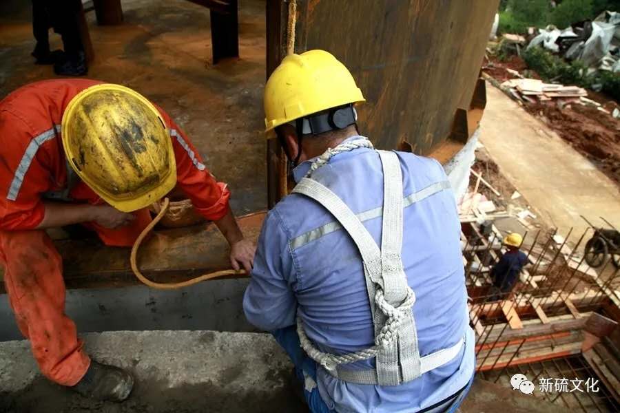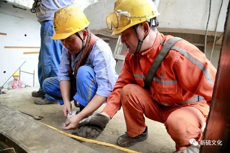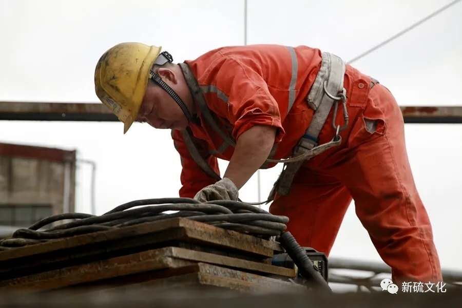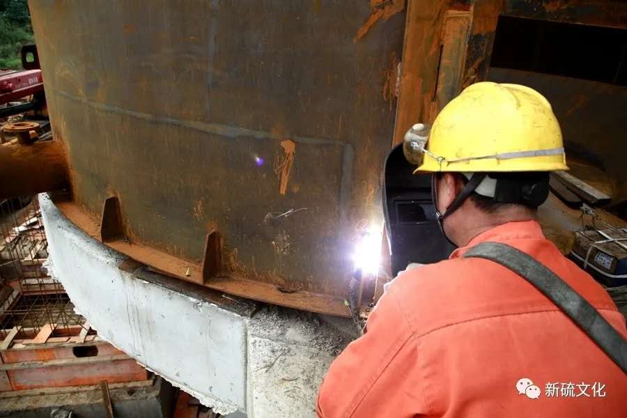 地面上大吊車、大貨車,選礦廠相關(guān)負(fù)責(zé)人、技術(shù)人員、安全員等忙著起吊龐然大物時,“焊高組”在底座上也一刻沒閑著,拖運(yùn)電焊設(shè)備、準(zhǔn)備焊接材料、在底座上鋪水泥保持平面,各個槽體支腳找平衡......由于底座緊挨著磨浮車間,空氣不流通,加上天氣悶熱難擋,武裝整齊的好“焊”們一會就汗?jié)窳斯ぷ鞣?,汗珠順著安全帽壓著的發(fā)根往下滾。